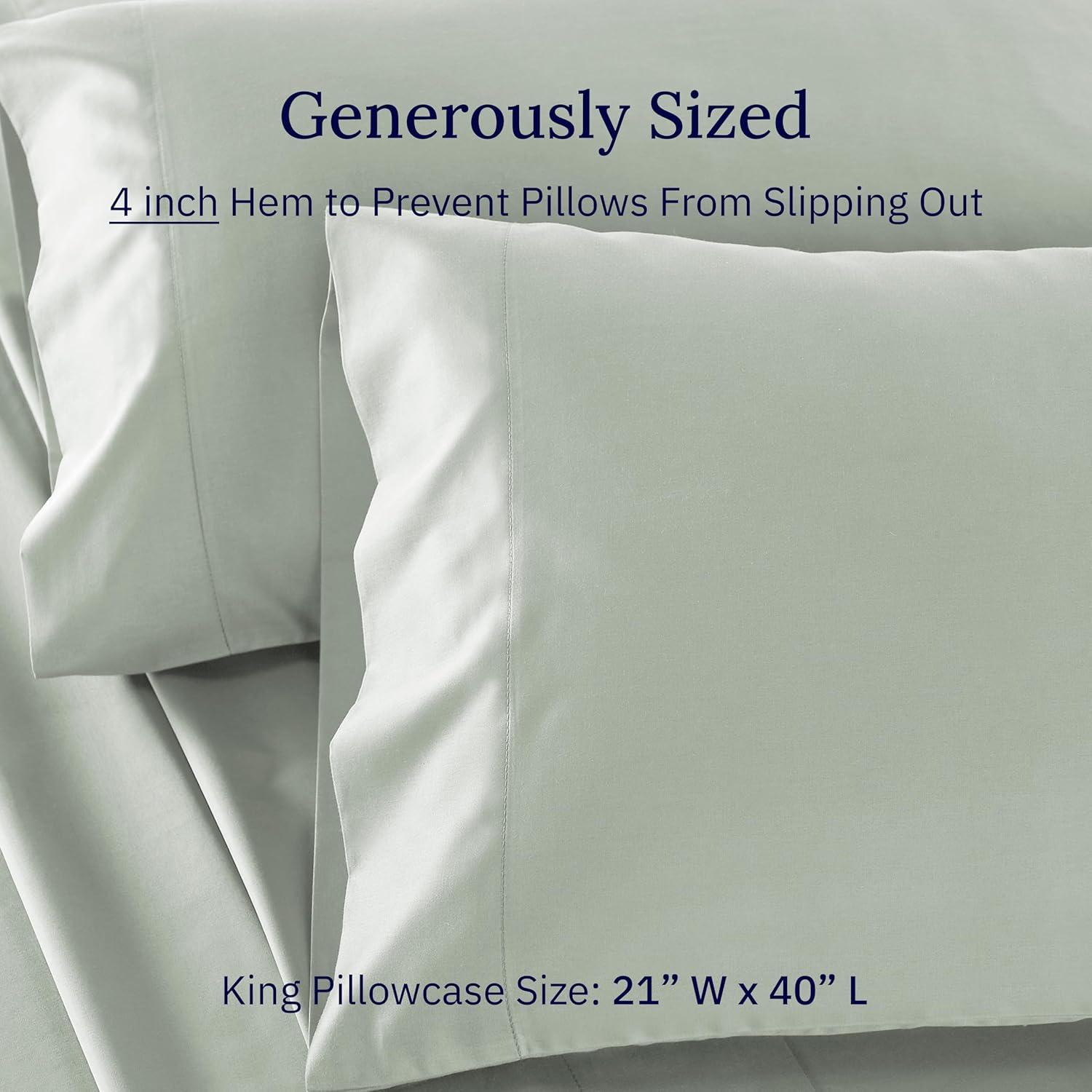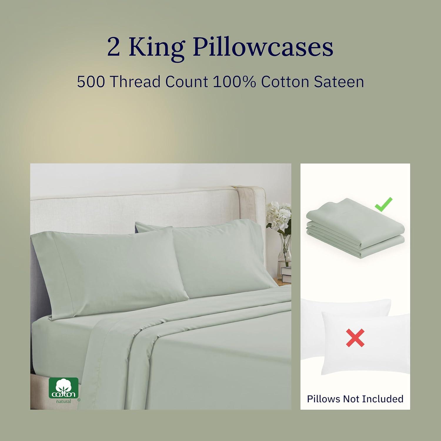 CALIFORNIA DESIGN DEN Soft & Silky 500 Thread Count 100% Cotton is Cool & Smooth, White Pillowcases Queen Size Fits Standard & Queen Pillows (Pure White)(14 - Silver Sage)