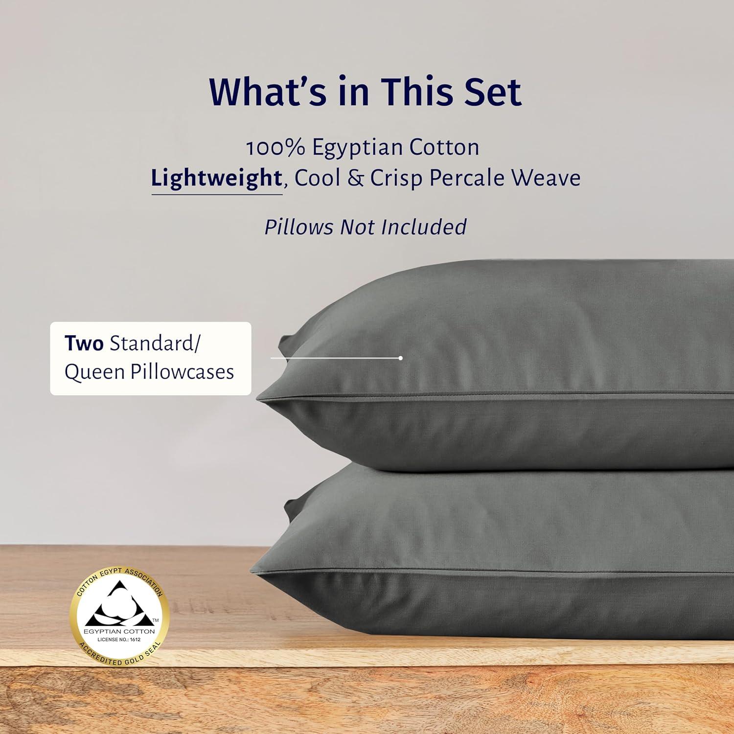 California Design Den Standard/Queen Pillow Cases Set of 2 - Luxury 100% Egyptian Cotton, Crisp Percale, Soft & Breathable Standard/Queen Size Pillow Cases - White(Grey)