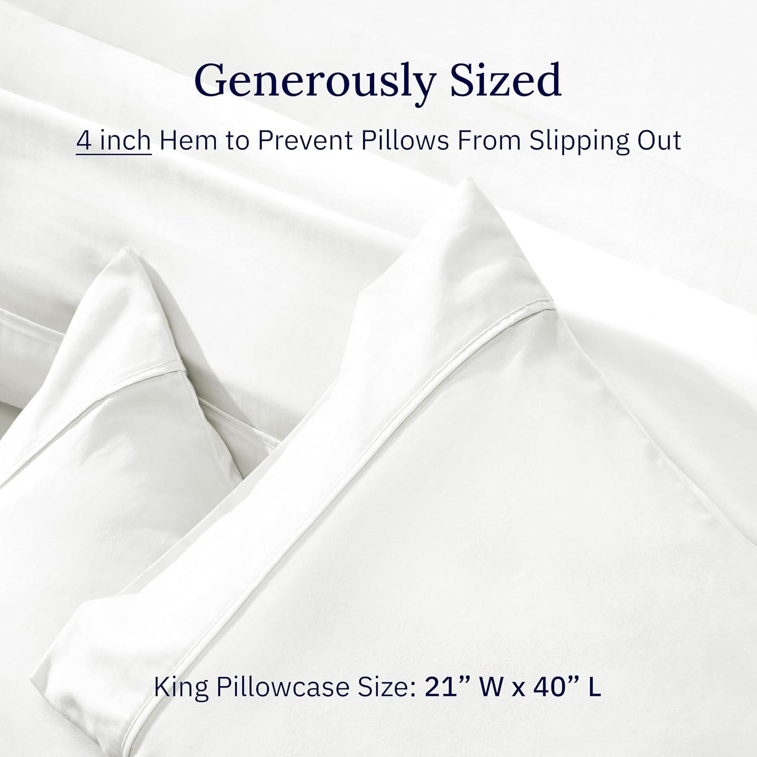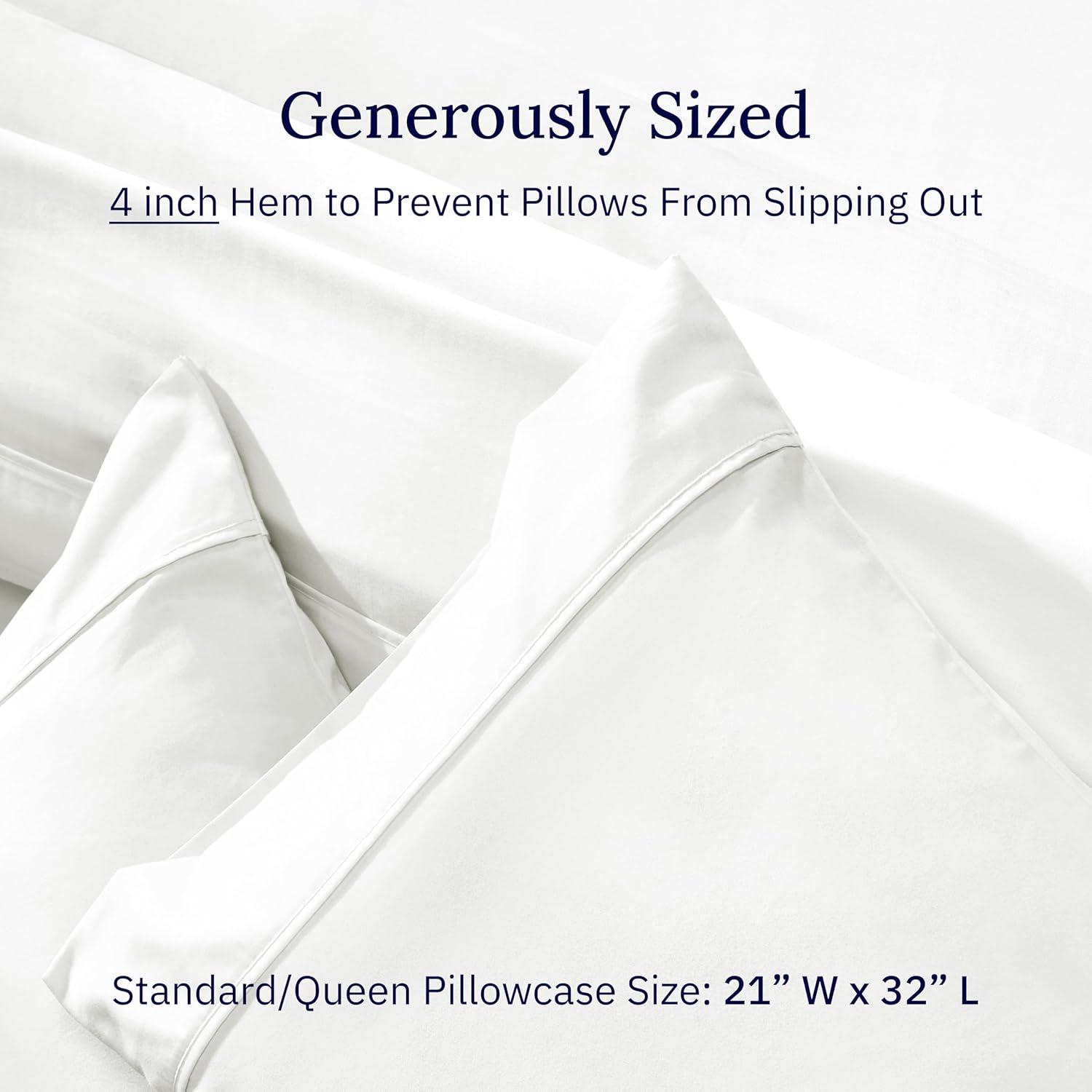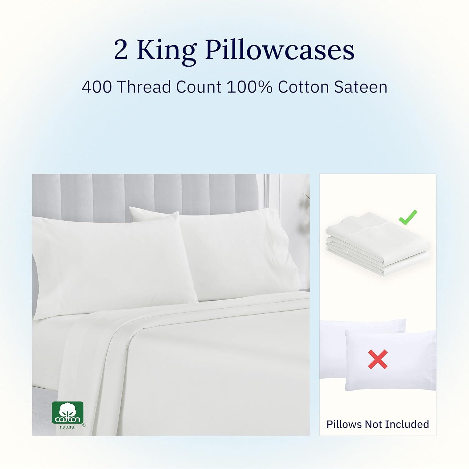 Set of 2 Pillowcases (Pillows Not Included) – Our luxury 400 thread count 100% cotton sateen white queen pillowcase pair is perfect for a restful night's sleep. Made with cooling and breathable cotton, providing comfort for all seasons and for any bedding set. It is designed to fit both standard and queen size pillows.