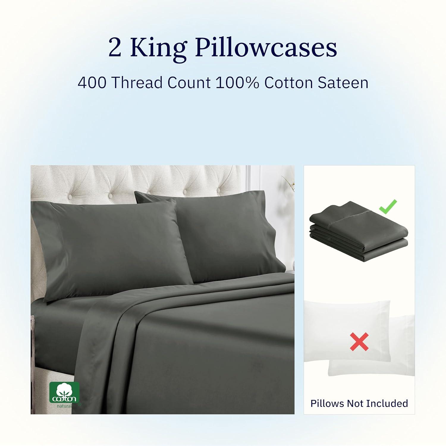 imageCalifornia Design Den Standard Queen Size Pillowcase Set  400 Thread Count 100 Cotton Sateen Set of 2 Pillow Covers Breathable Cooling Soft for Quality Sleep  Bright White07  Grey