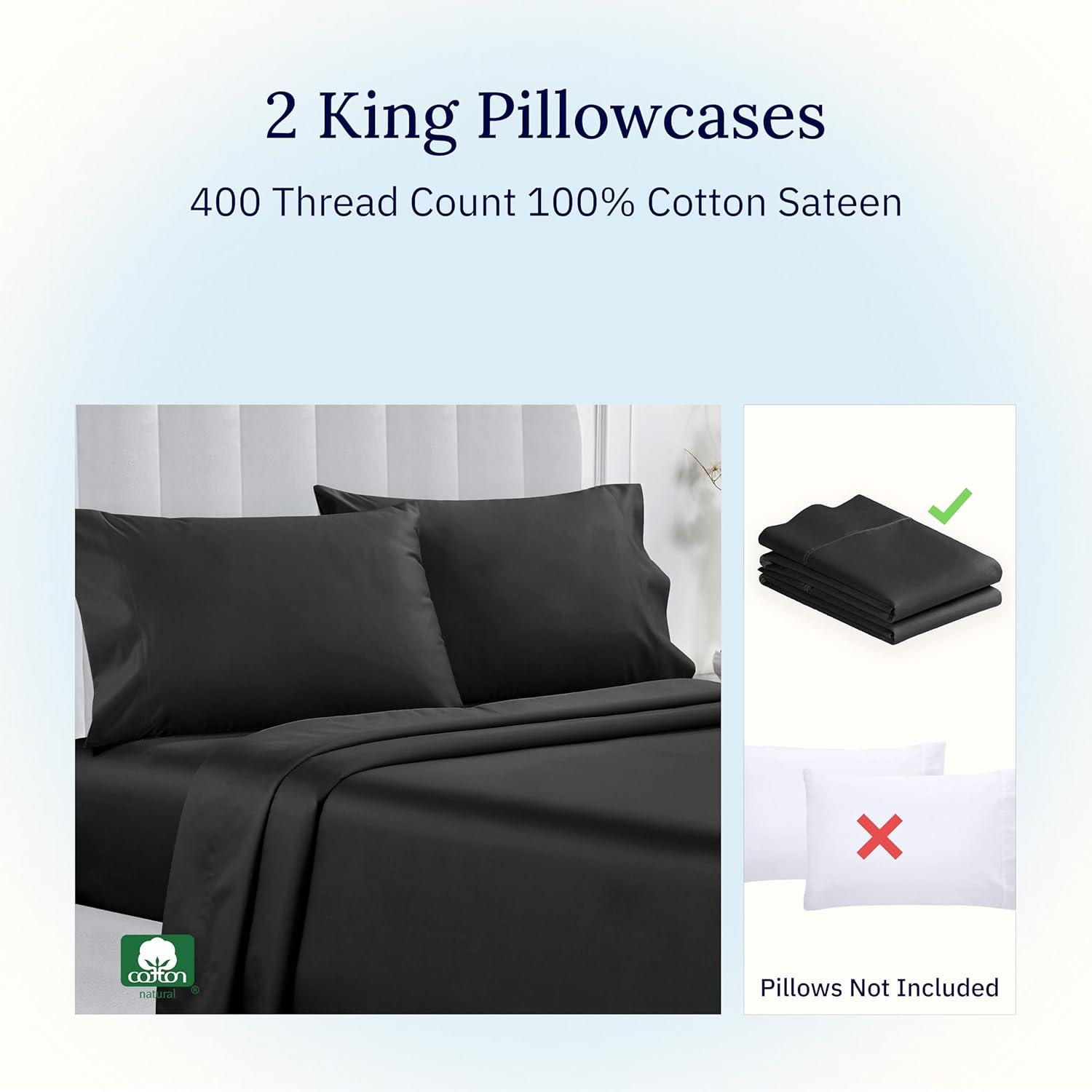imageCalifornia Design Den Standard Queen Size Pillowcase Set  400 Thread Count 100 Cotton Sateen Set of 2 Pillow Covers Breathable Cooling Soft for Quality Sleep  Bright White08  Black