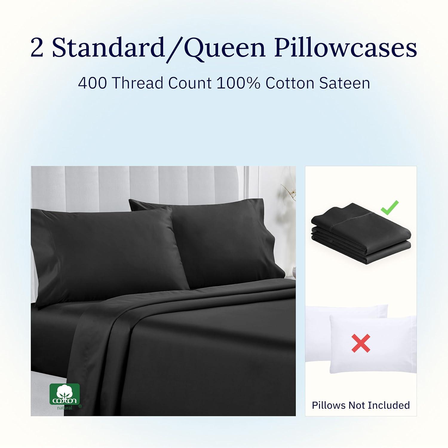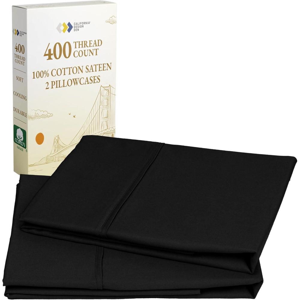 California Design Den Standard Queen Size Pillowcase Set - 400 Thread Count, 100% Cotton Sateen, Set of 2 Pillow Covers, Breathable, Cooling, Soft for Quality Sleep - Bright White(08 - Black)