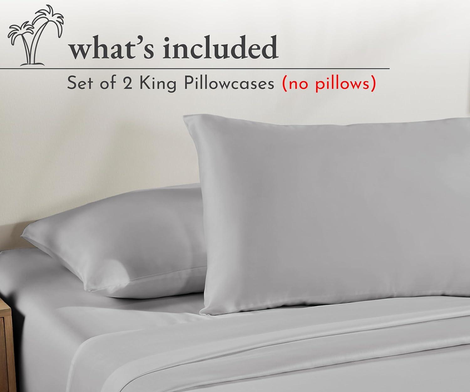 California Design Den Standard Queen Size Pillowcases - 100% Cotton, Set of 2 Soft & Cooling Sateen Weave Cases, Fits Queen and Standard Size Pillows - Bright White(03 - Light Grey)