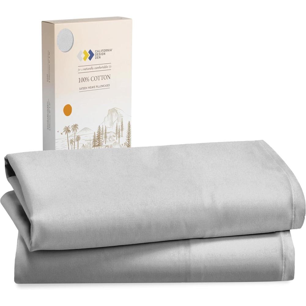 California Design Den Standard Queen Size Pillowcases – 100% Cotton, Set of 2 Soft & Cooling Sateen Weave Cases, Fits Queen and Standard Size Pillows – Bright White(03 – Light Grey)