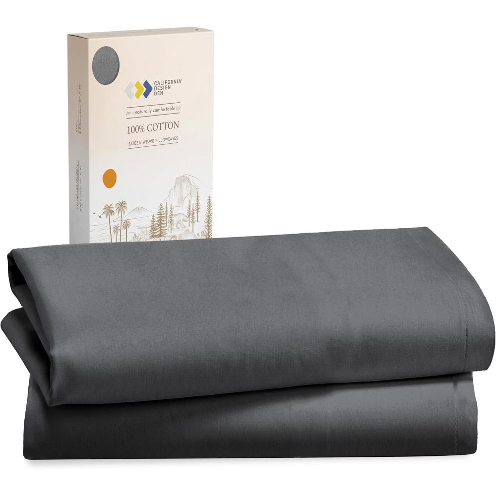 California Design Den Standard Queen Size Pillowcases – 100% Cotton, Set of 2 Soft & Cooling Sateen Weave Cases, Fits Queen and Standard Size Pillows – Bright White(04 – Dark Grey)