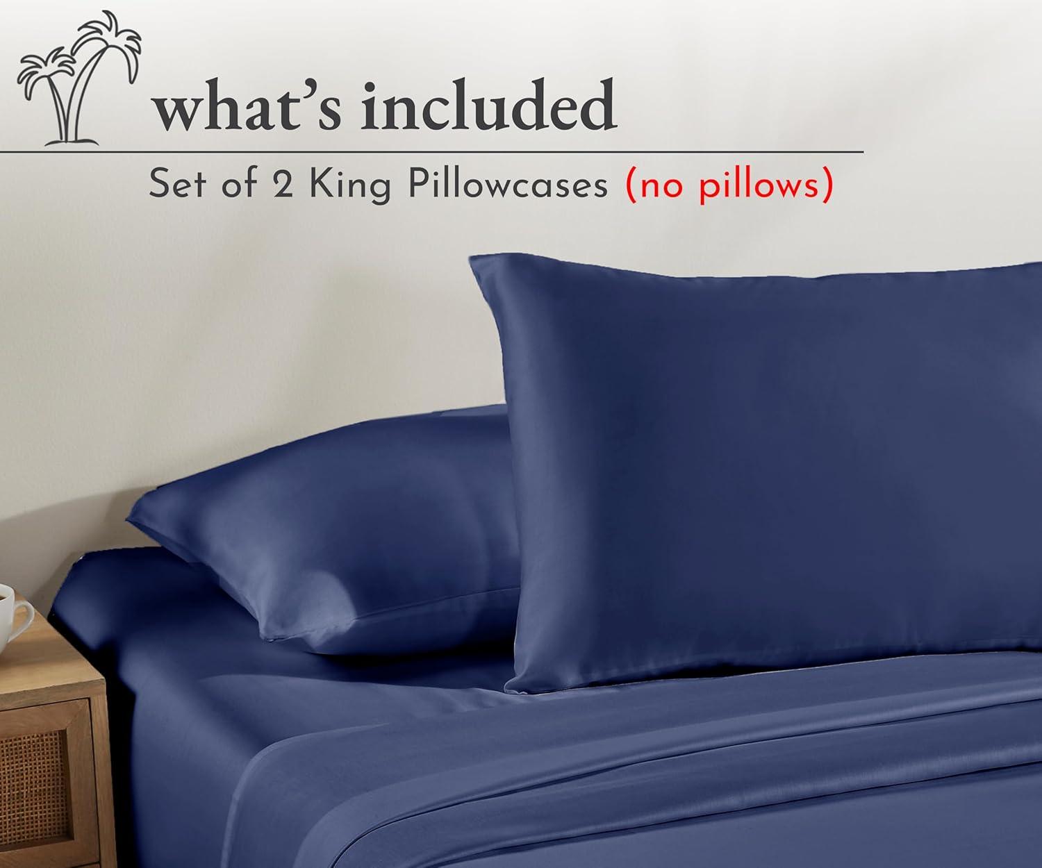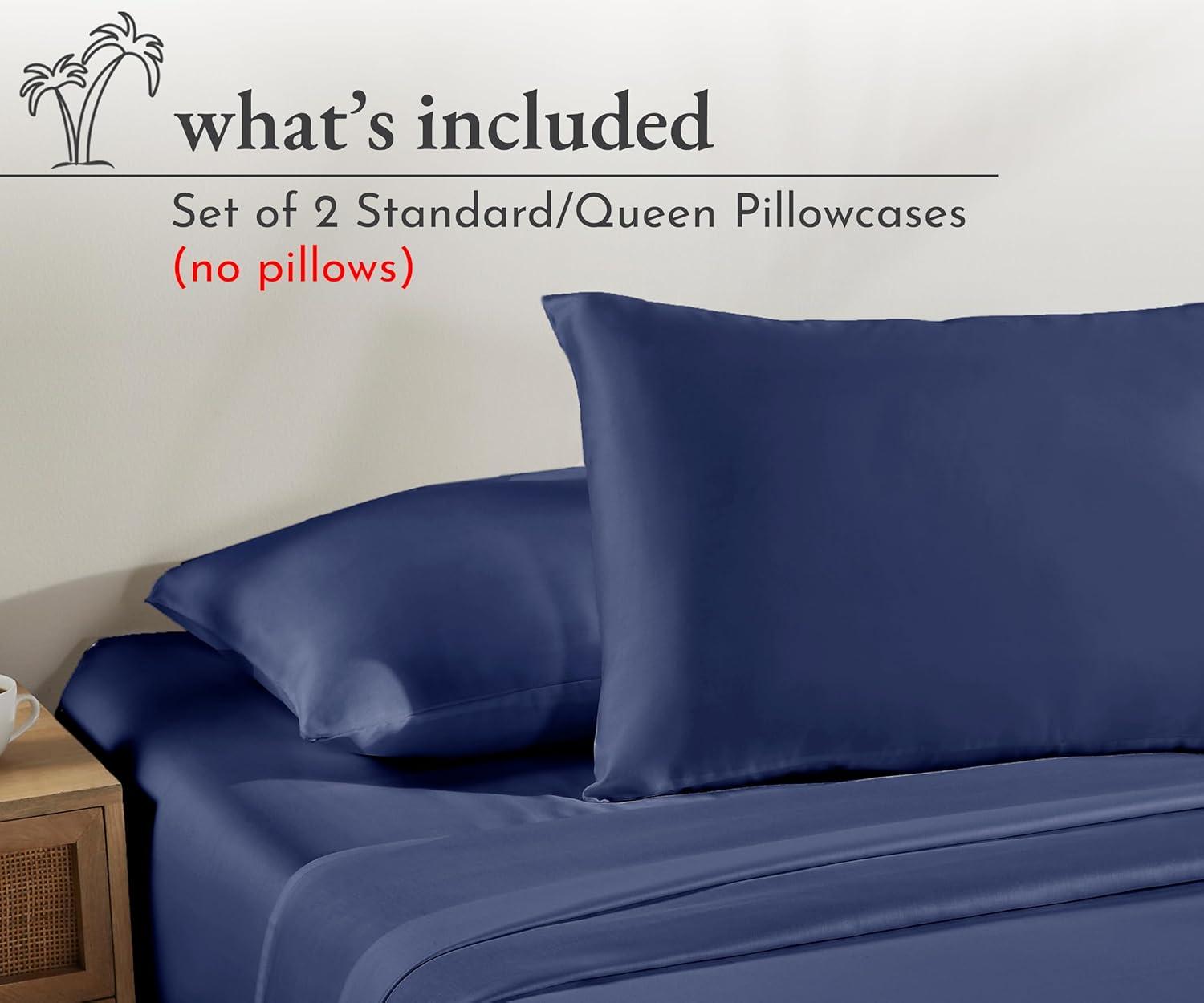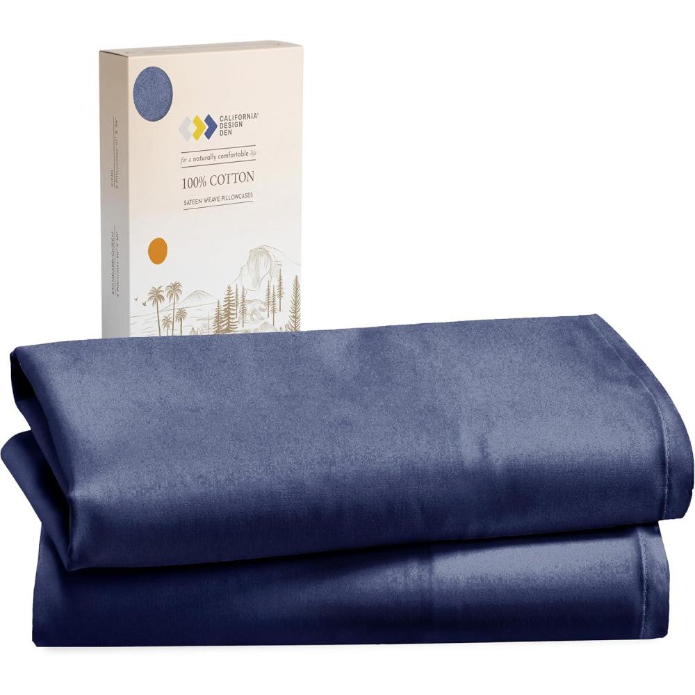 California Design Den Standard Queen Size Pillowcases – 100% Cotton, Set of 2 Soft & Cooling Sateen Weave Cases, Fits Queen and Standard Size Pillows – Bright White(07 – Navy Blue)