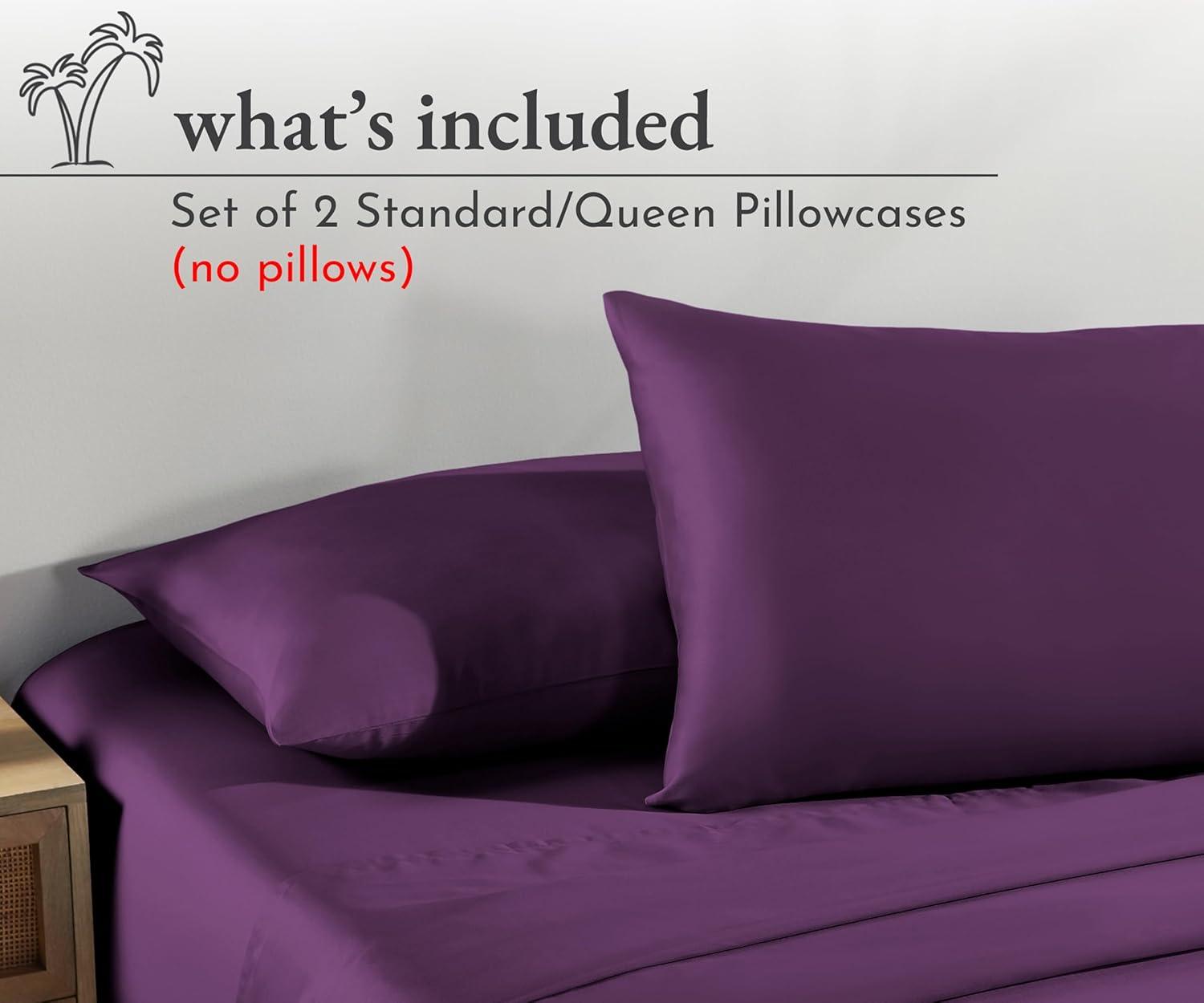 California Design Den Standard Queen Size Pillowcases – 100% Cotton, Set of 2 Soft & Cooling Sateen Weave Cases, Fits Queen and Standard Size Pillows – Bright White(09 – Purple Passion)