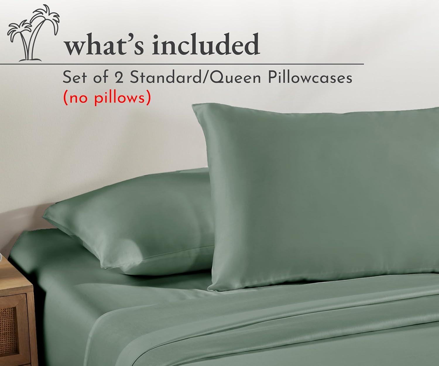 WELL-FITTING PILLOWCASES: Our generously-sized 100% cotton pillowcase set includes two pillowcases measuring 20″ W x 30″ L, fitting both Standard and Queen size pillows with a smooth sateen sheen similar to silk pillowcases, ensuring a cool and comfortable sleep.