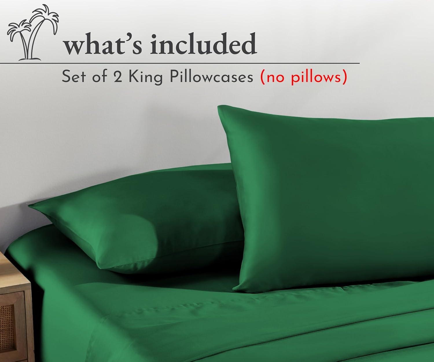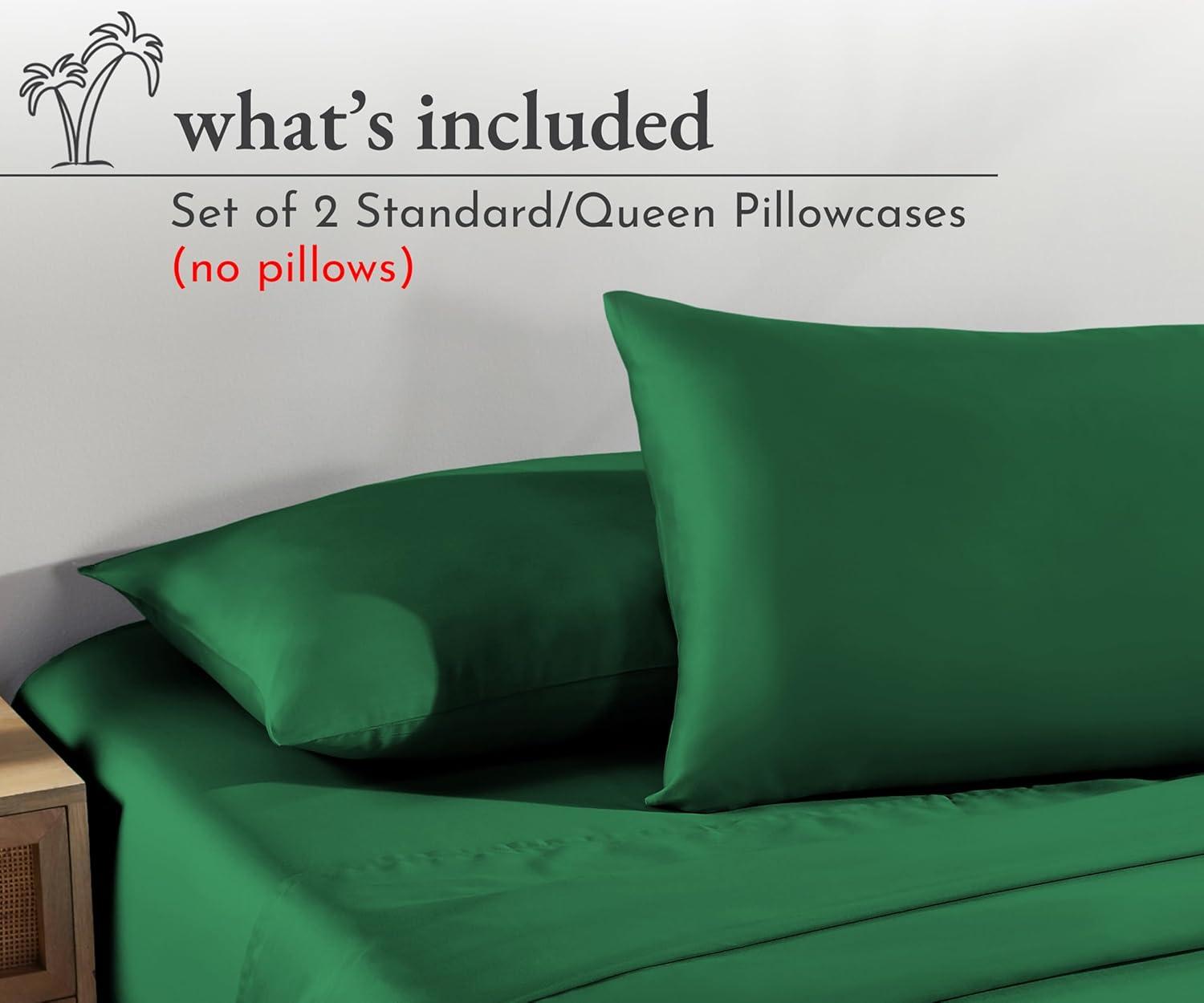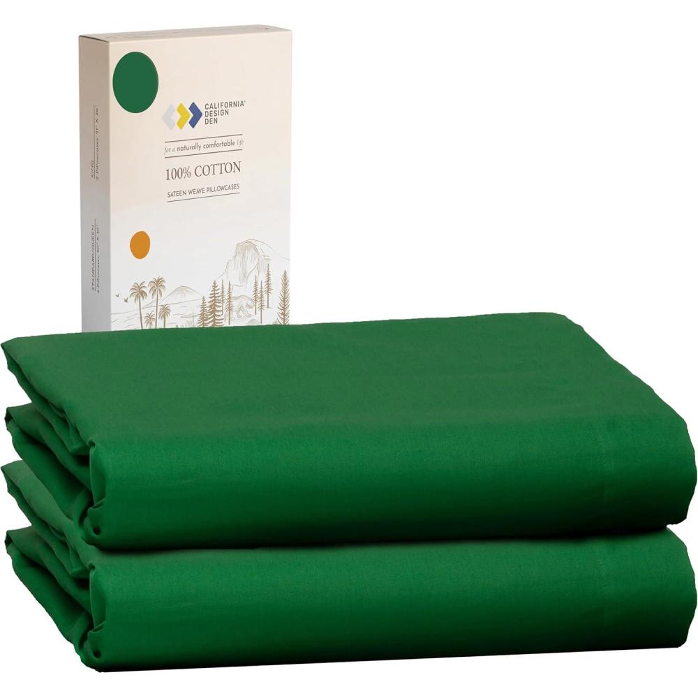 California Design Den Standard Queen Size Pillowcases – 100% Cotton, Set of 2 Soft & Cooling Sateen Weave Cases, Fits Queen and Standard Size Pillows – Bright White(14 – Emerald Green)