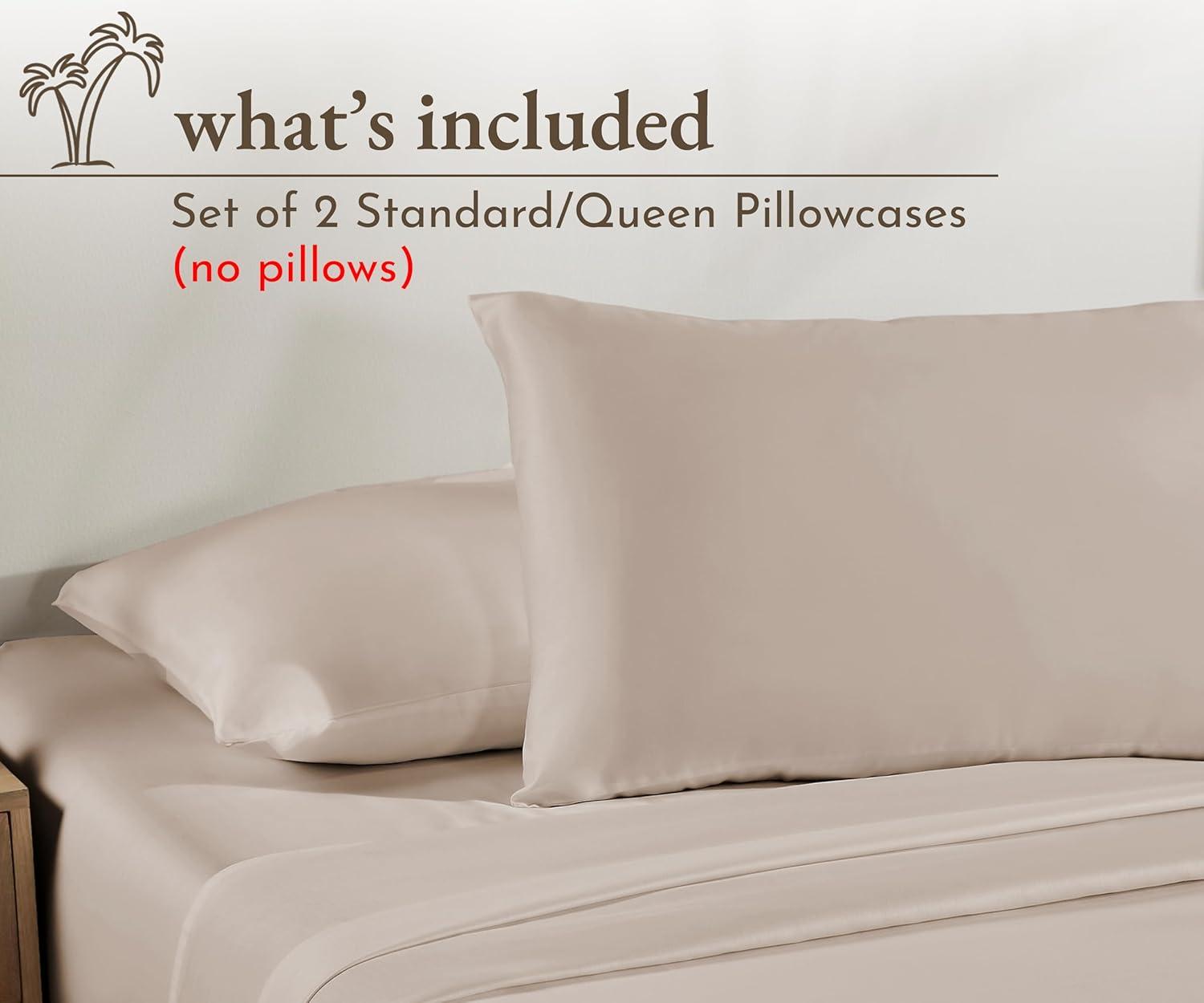 California Design Den Standard Queen Size Pillowcases - 100% Cotton, Set of 2 Soft & Cooling Sateen Weave Cases, Fits Queen and Standard Size Pillows - Bright White(19 - Beige (Warm Taupe))