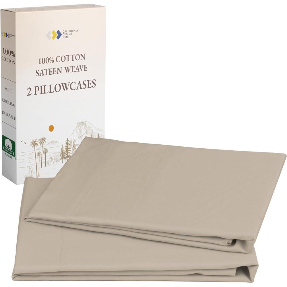 California Design Den Standard Queen Size Pillowcases – 100% Cotton, Set of 2 Soft & Cooling Sateen Weave Cases, Fits Queen and Standard Size Pillows – Bright White(19 – Beige (Warm Taupe))