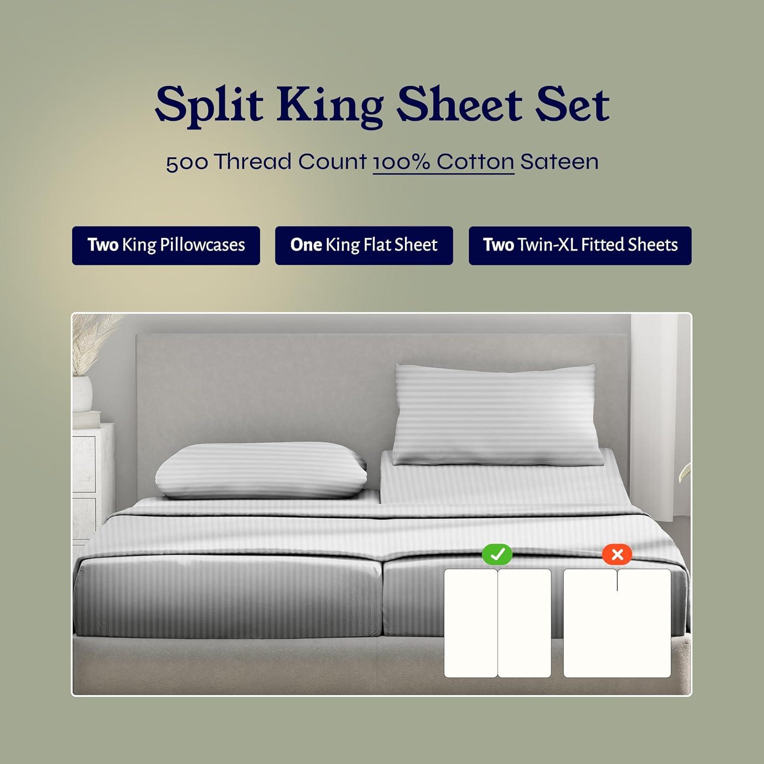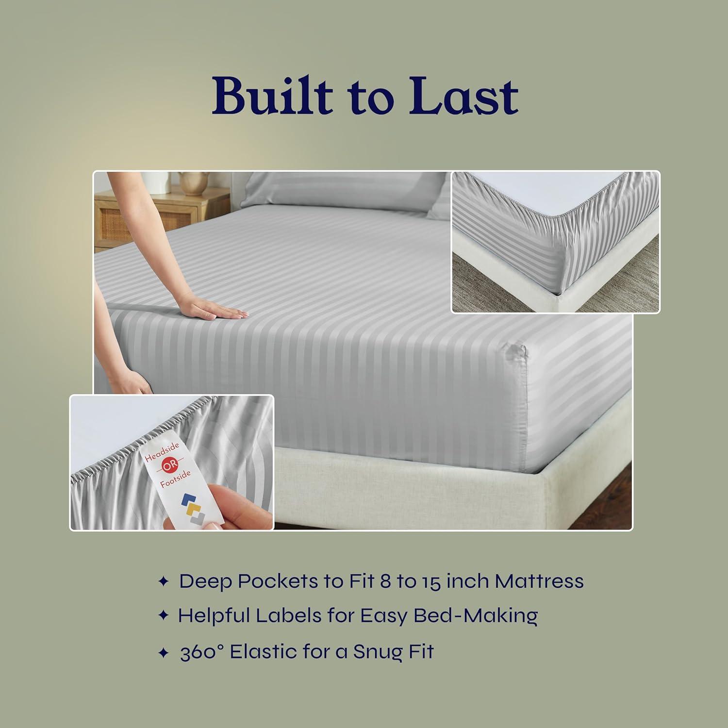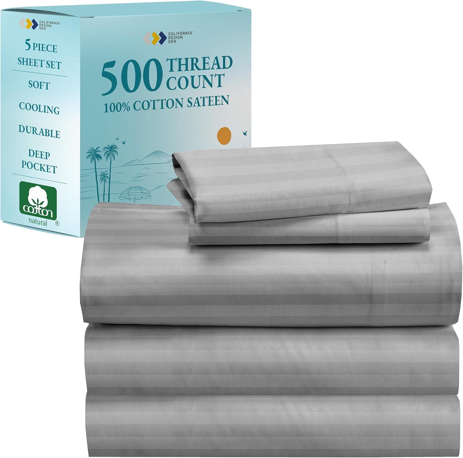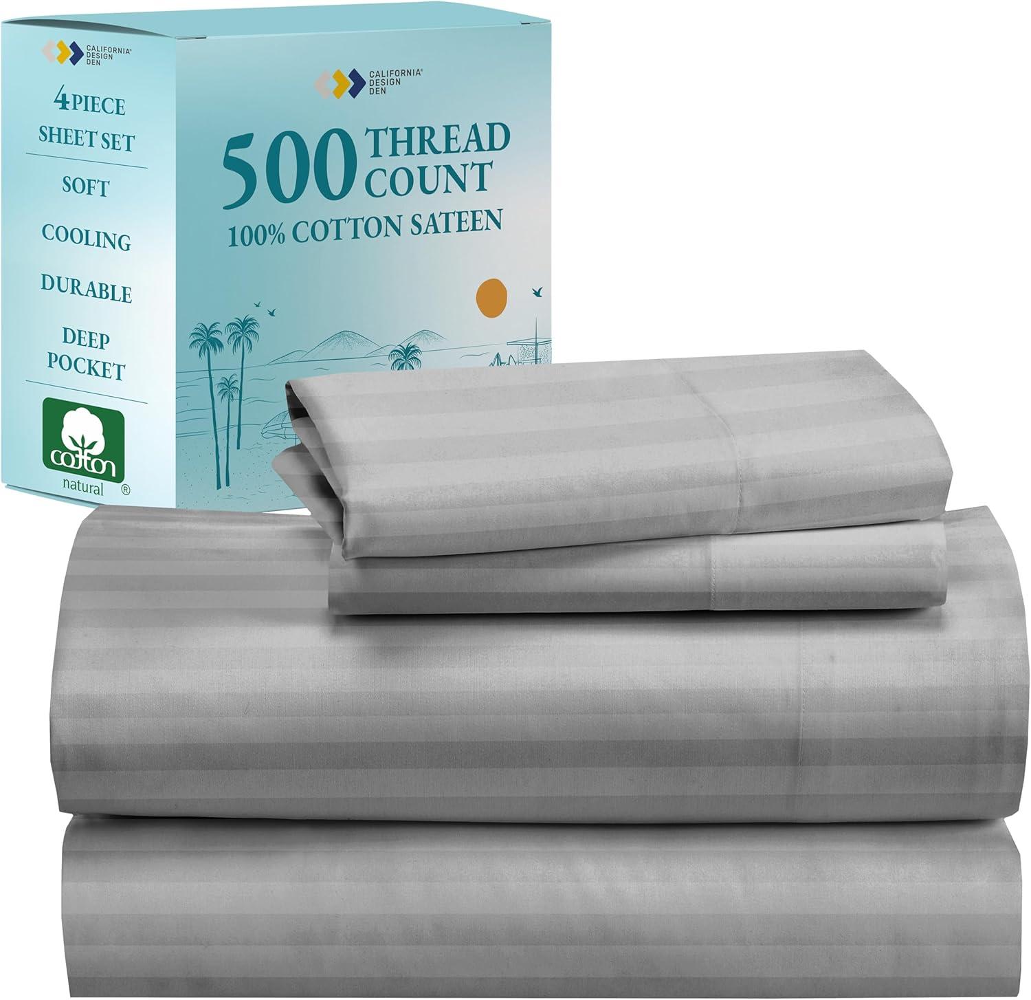 California Design Den – Twin XL Sheet Set Soft 100% Cotton Cooling Sheets Deep Pockets, 500 Thread Count Sateen, Hotel Quality, Damask Stripe Bedding for Home Twin XL Sheets (Light Grey – Striped)(05 – Light Grey)