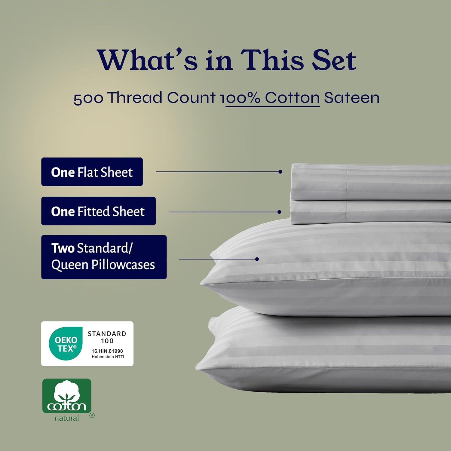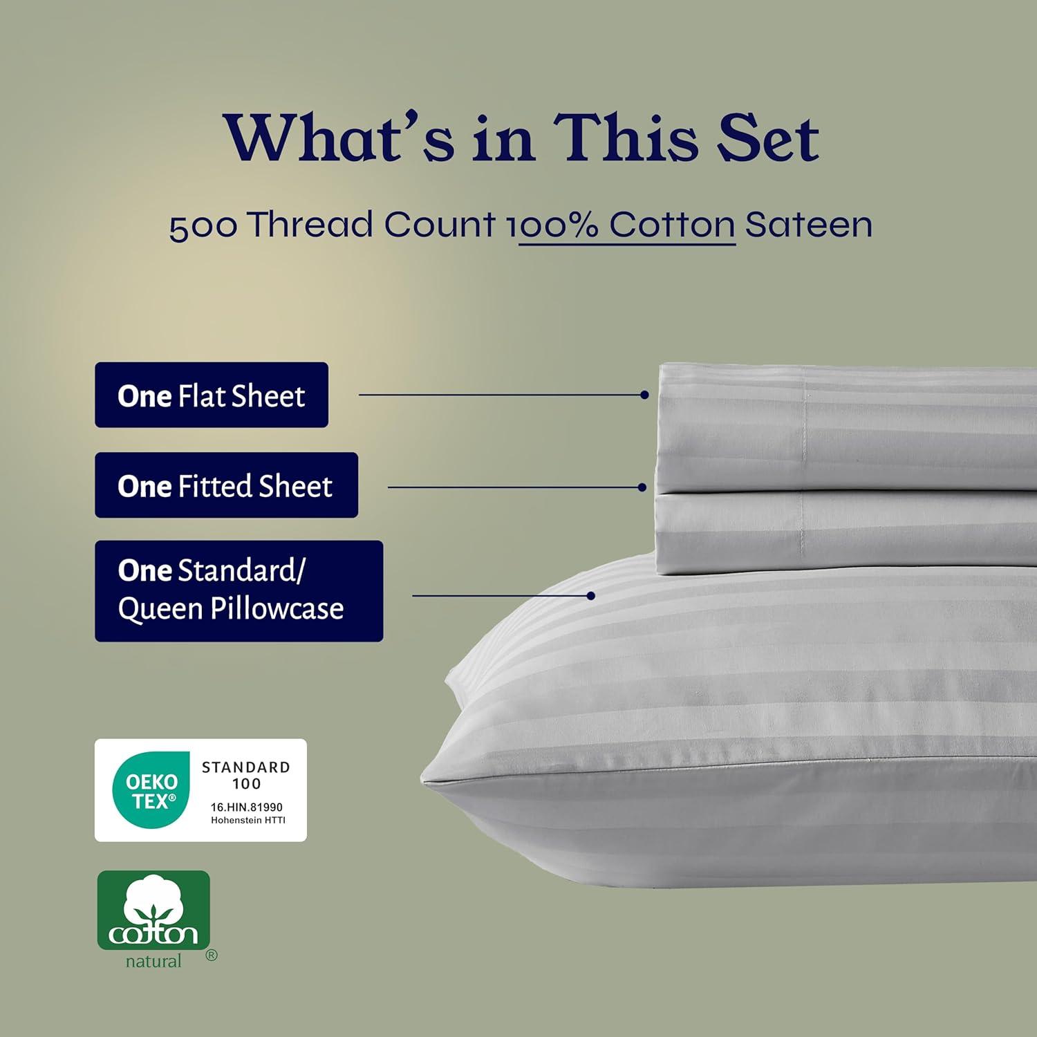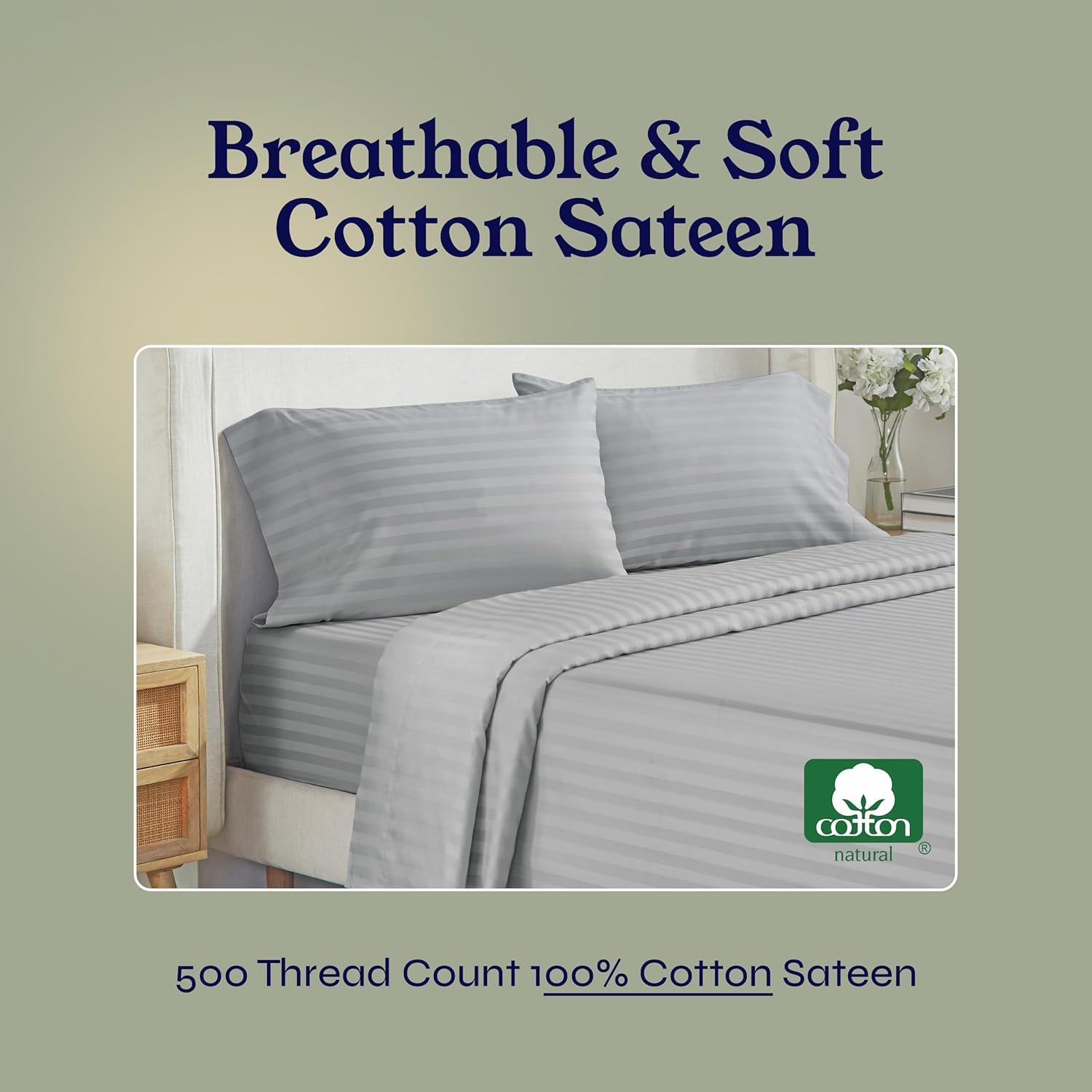 California Design Den - Twin XL Sheet Set Soft 100% Cotton Cooling Sheets Deep Pockets, 500 Thread Count Sateen, Hotel Quality, Damask Stripe Bedding for Home Twin XL Sheets (Light Grey - Striped)(06 - Light Grey Striped)