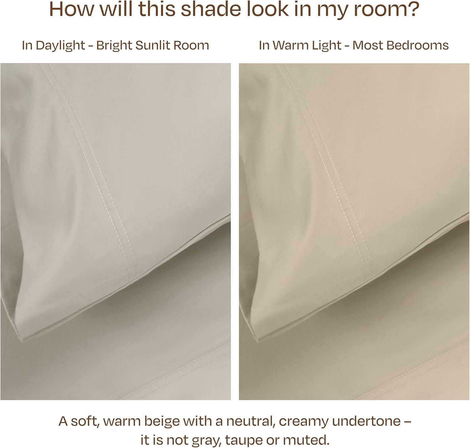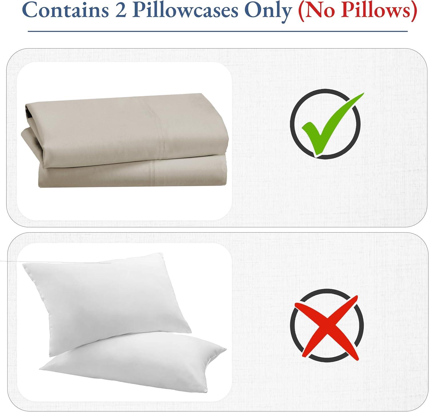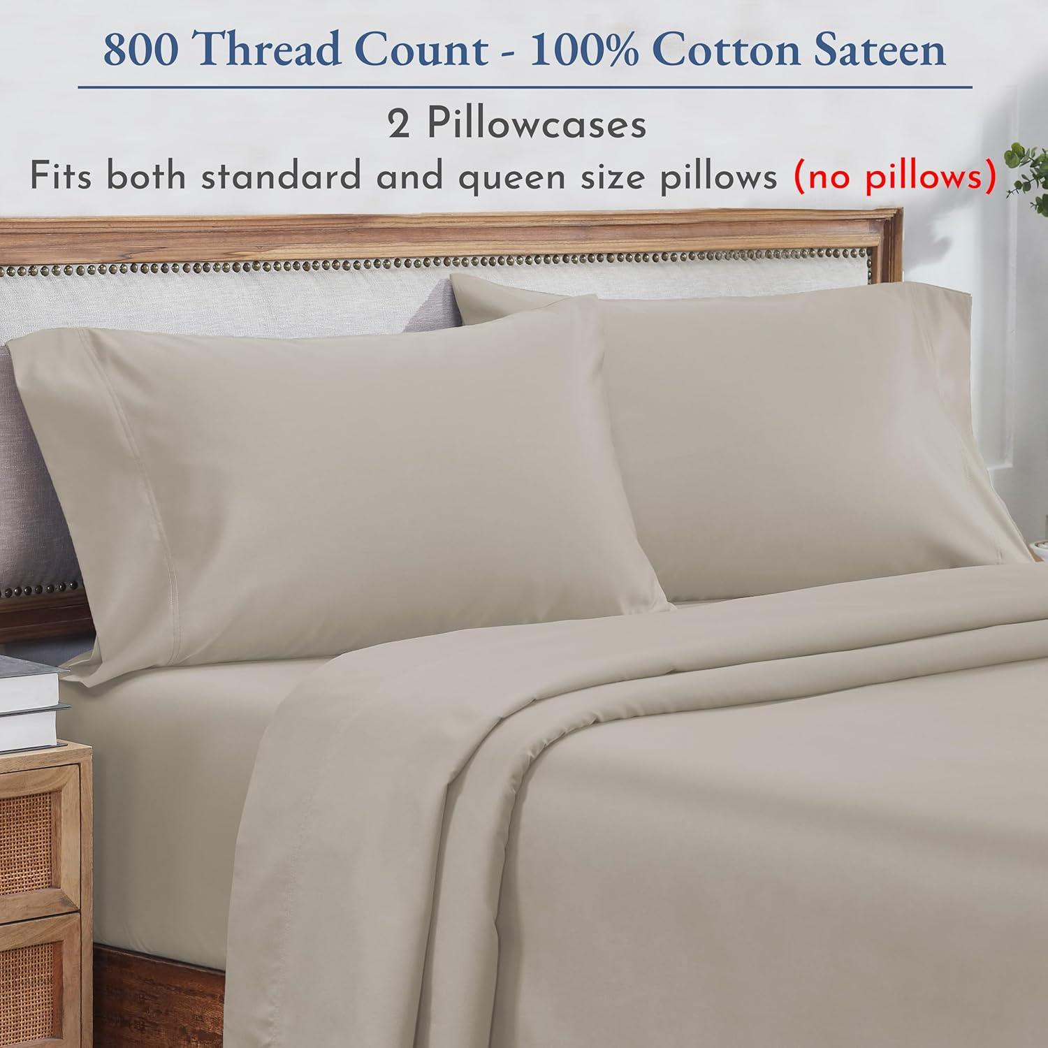Heirloom Soft, Smooth & Thick Certified 800 Thread Count 100% Cotton Sateen is Superior to Egyptian Cotton Claims, 2 White Standard Pillowcases Fits Standard & Queen Size Pillows (Bright White)(Beige)