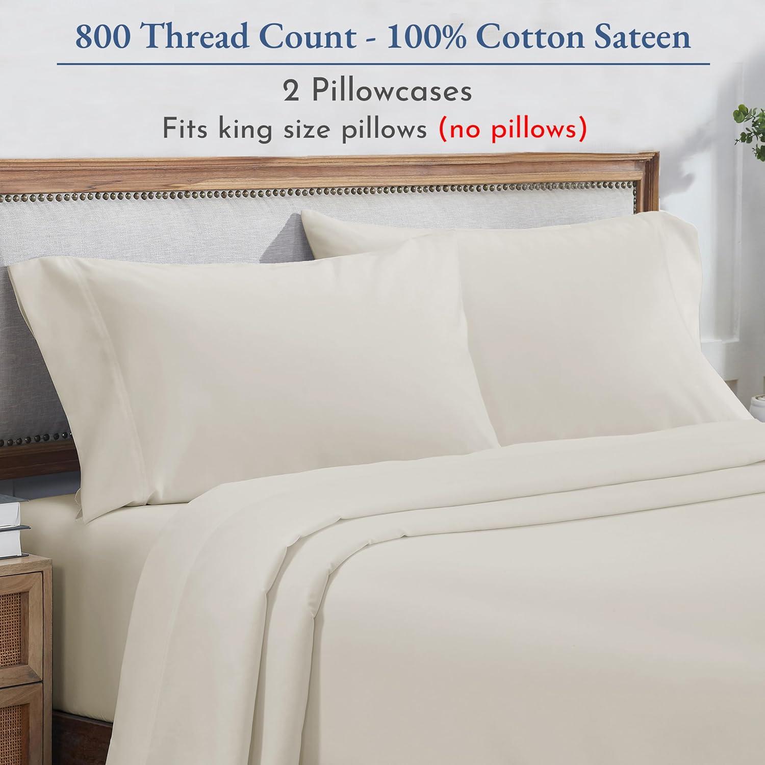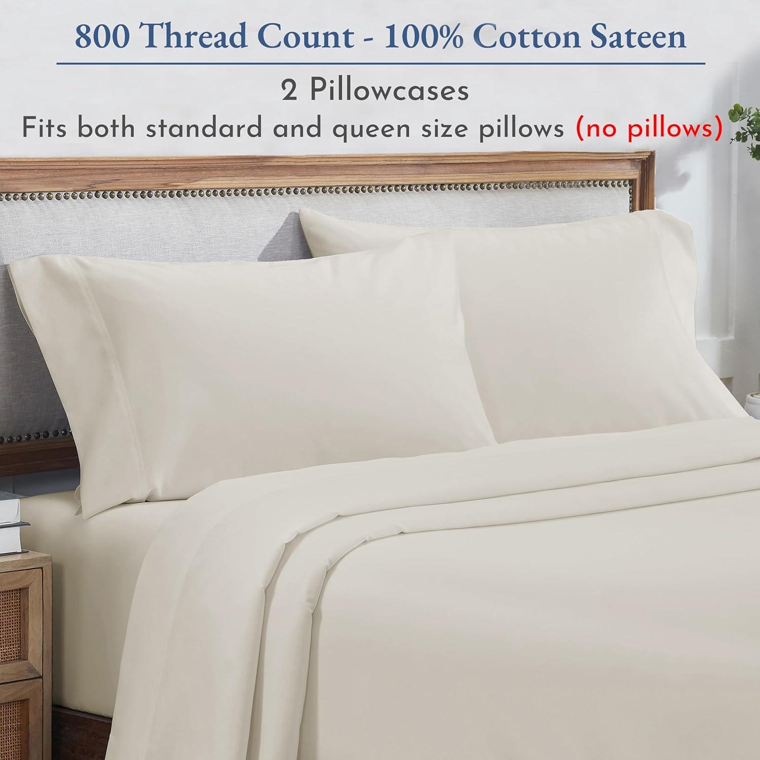 Heirloom Soft, Smooth & Thick Certified 800 Thread Count 100% Cotton Sateen is Superior to Egyptian Cotton Claims, 2 White Standard Pillowcases Fits Standard & Queen Size Pillows (Bright White)(Ivory (Cream Tone))