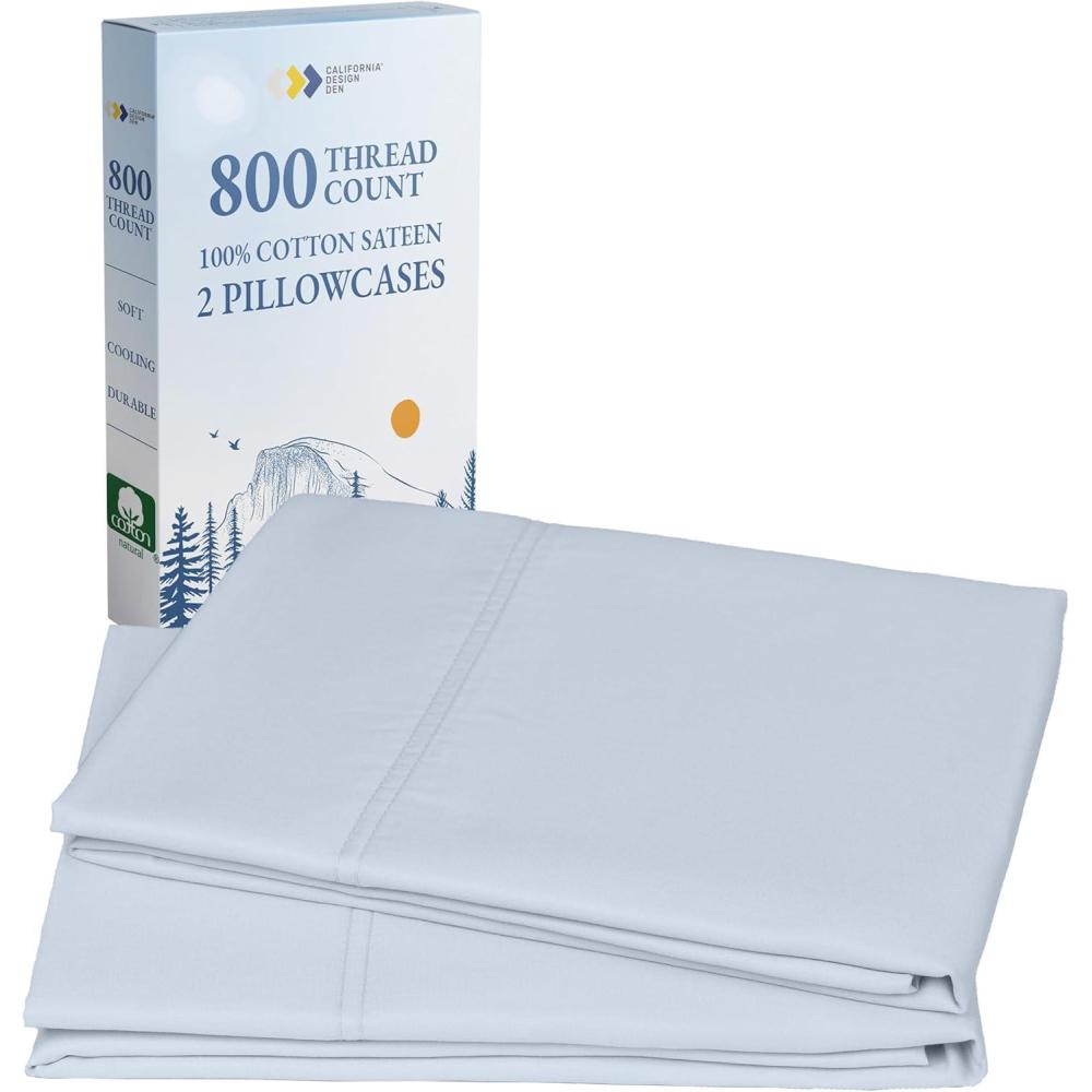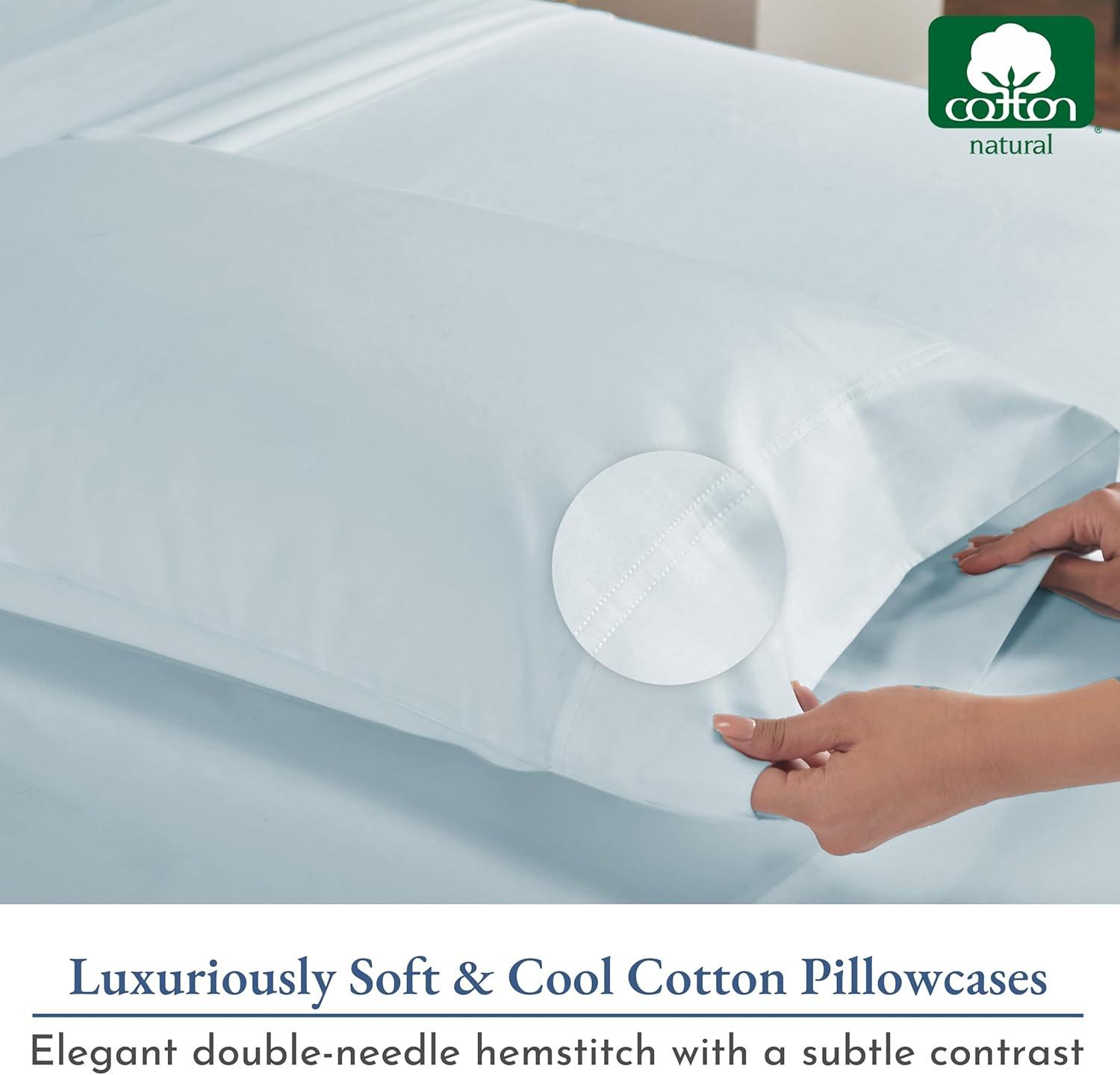 Get more for your money with our exclusive bundle deals on Heirloom Soft, Smooth & Thick Certified 800 Thread Count 100% Cotton Sateen is Superior to Egyptian Cotton Claims, 2 White Standard Pillowcases Fits Standard & Queen Size Pillows (Bright White)(Light Blue) and accessories.