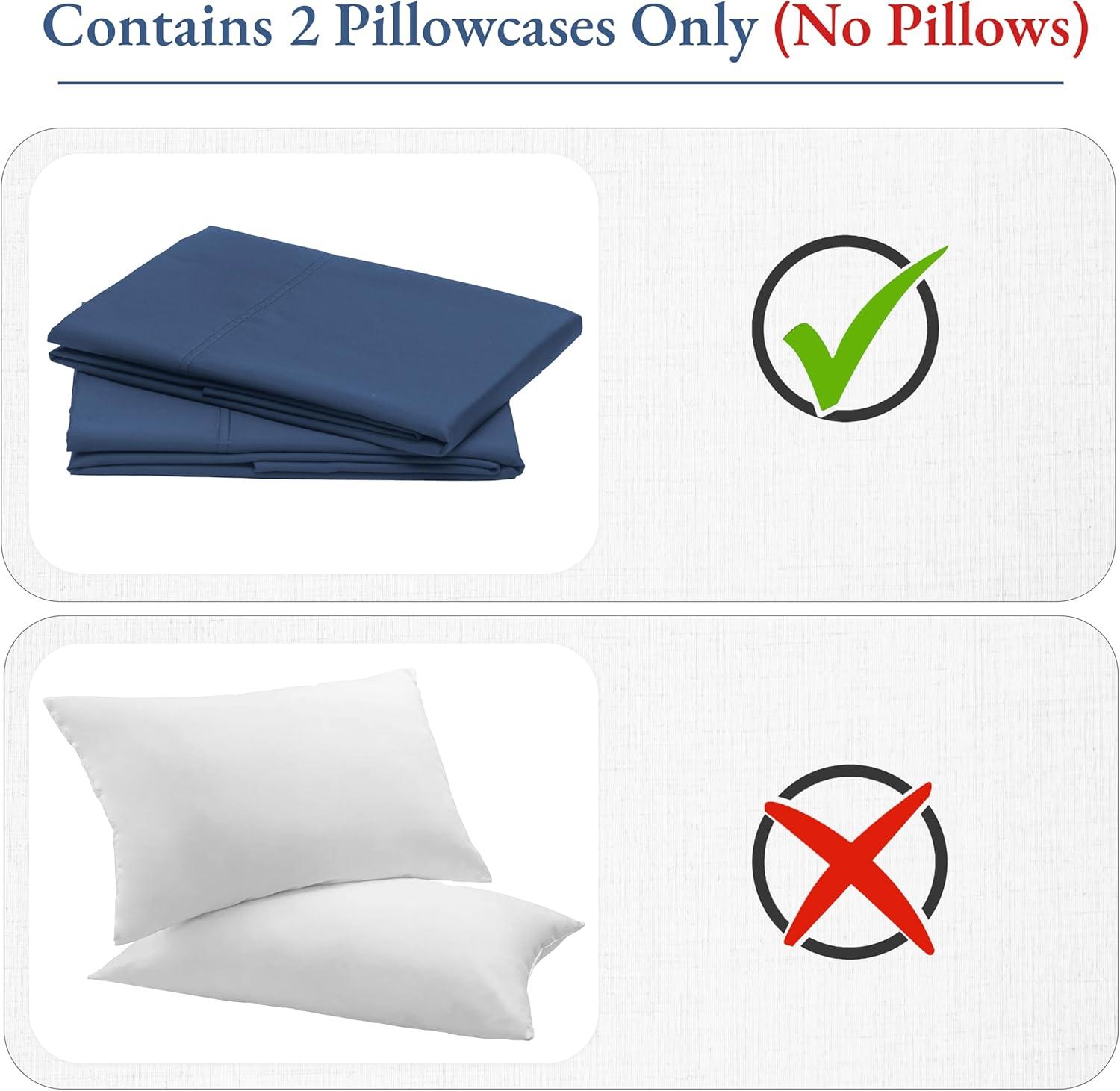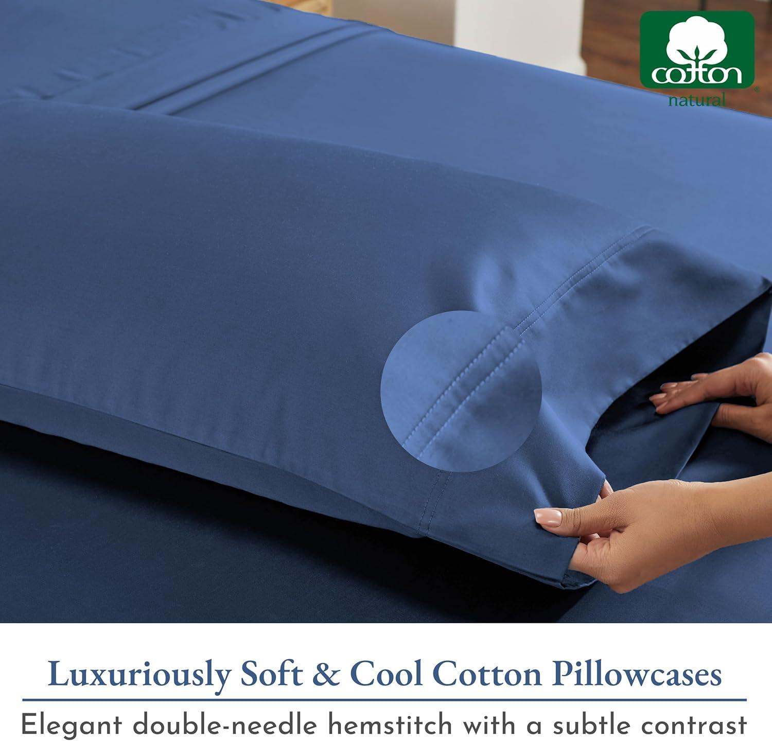 Heirloom Soft, Smooth & Thick Certified 800 Thread Count 100% Cotton Sateen is Superior to Egyptian Cotton Claims, 2 White Standard Pillowcases Fits Standard & Queen Size Pillows (Bright White)(Navy Blue)