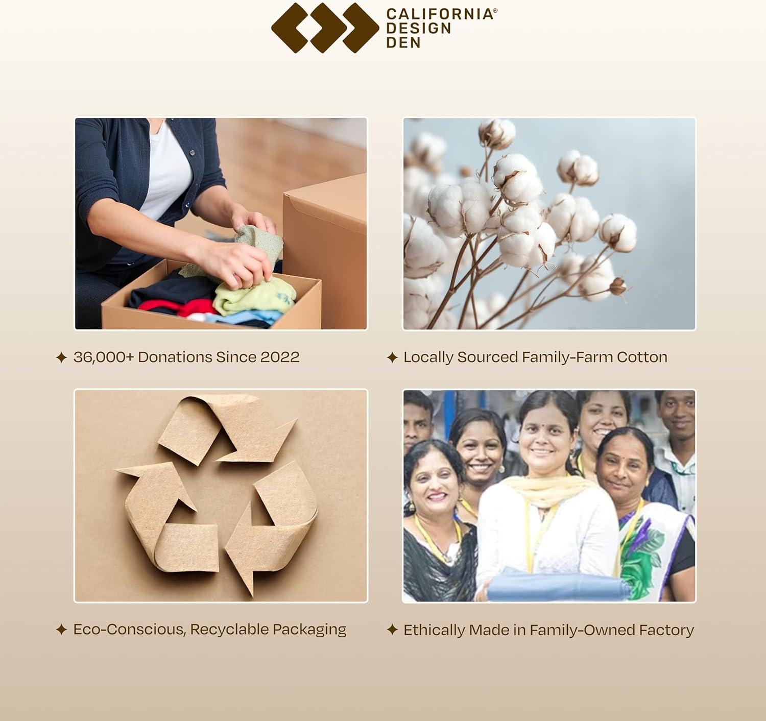 OUR COMMITMENT: We prioritize comfort, community, and sustainability. Since 2022, we've donated over 36,000 bedding items to US charities and removed plastic from our packaging. Sheets are crafted in our family‑owned factory in India with care and quality‑checked—thread count may vary by ±5% due to standard manufacturing limits. Enjoy affordable luxury and hassle‑free returns for a better night’s sleep.