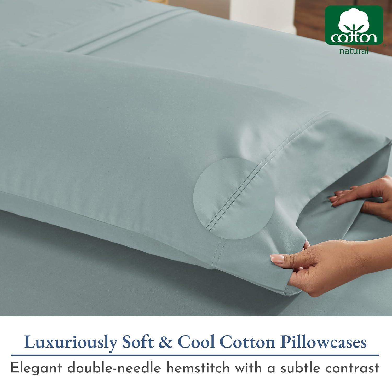 CERTIFIED SAFE AND EASY CARE LUXURY: Machine-wash warm and tumble-dry low. For a smooth, nearly wrinkle-free finish, remove this standard pillowcase set promptly from the dryer. Made from extra-long staple cotton, these pillow covers withstand pilling, shrinking, and fading, getting softer with each wash and lasting for years. Being OEKO-TEX STANDARD 100 certified, it is gentle on skin.