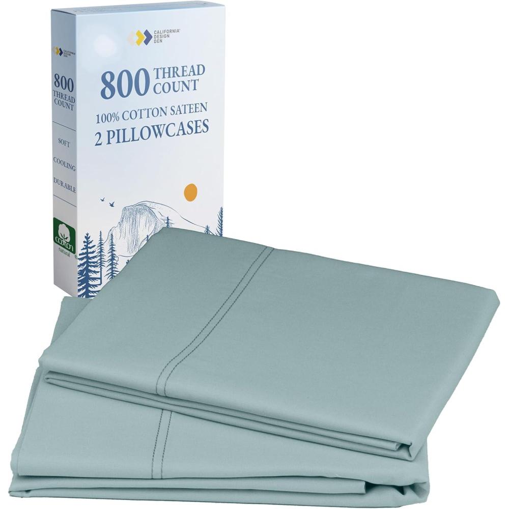 imageHeirloom Soft Smooth ampamp Thick Certified 800 Thread Count 100 Cotton Sateen is Superior to Egyptian Cotton Claims 2 White Standard Pillowcases Fits Standard ampamp Queen Size Pillows Bright WhiteSage Green