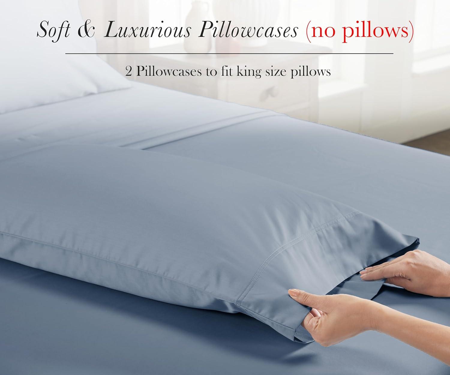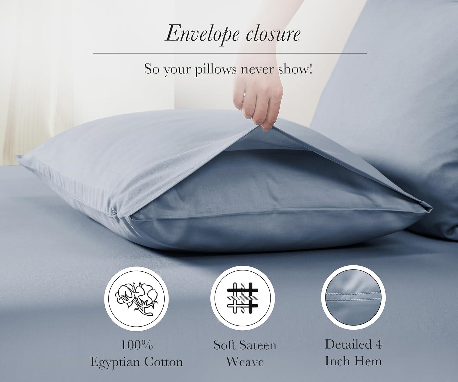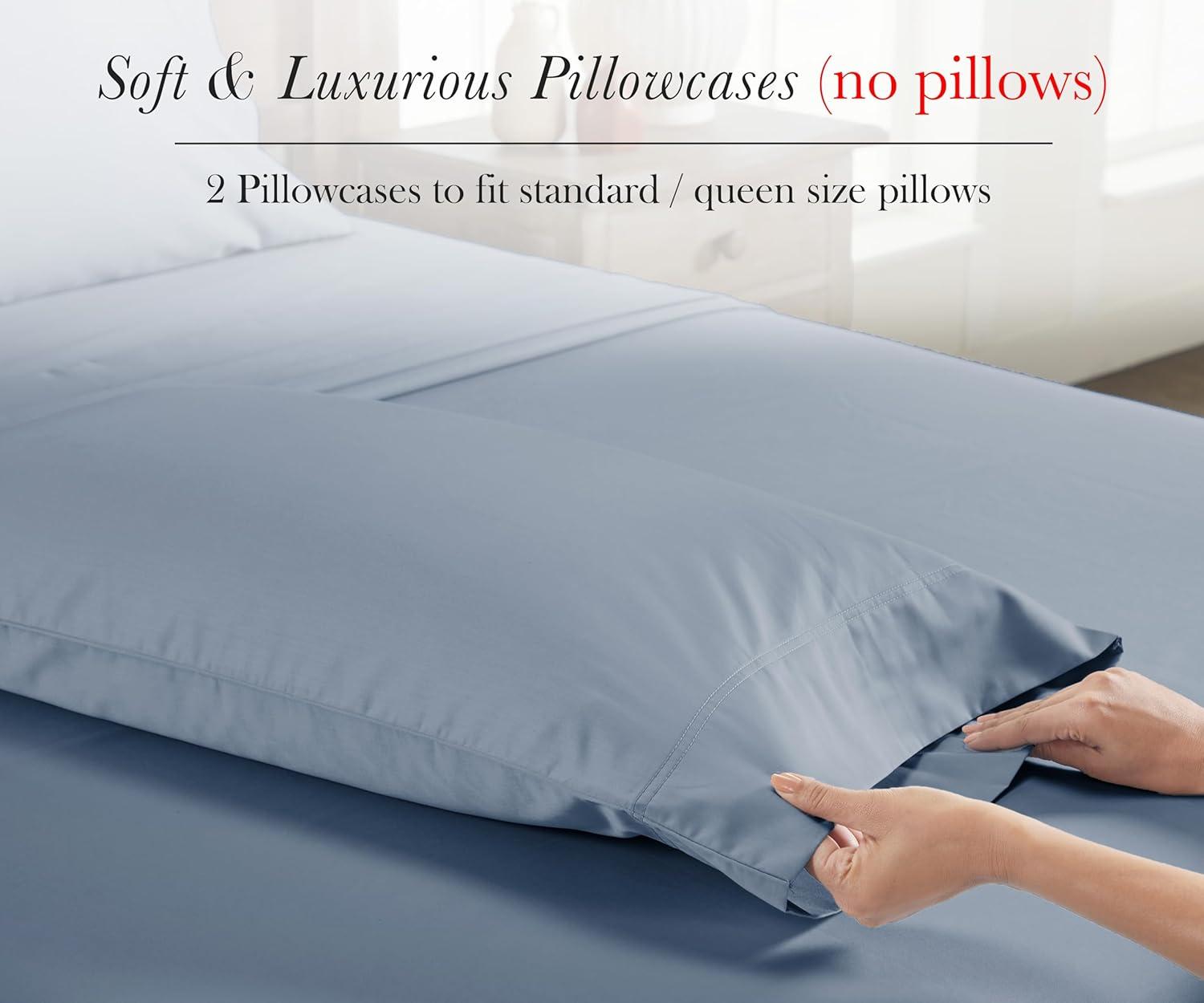 Luxury 100% Egyptian Cotton Pillow Cases Queen Size Set of 2, Sateen Weave, Soft, Breathable & Cooling Bright White Pillow Cases Set of 2 for Standard/Queen Size Pillows(Blue Hydrangea)