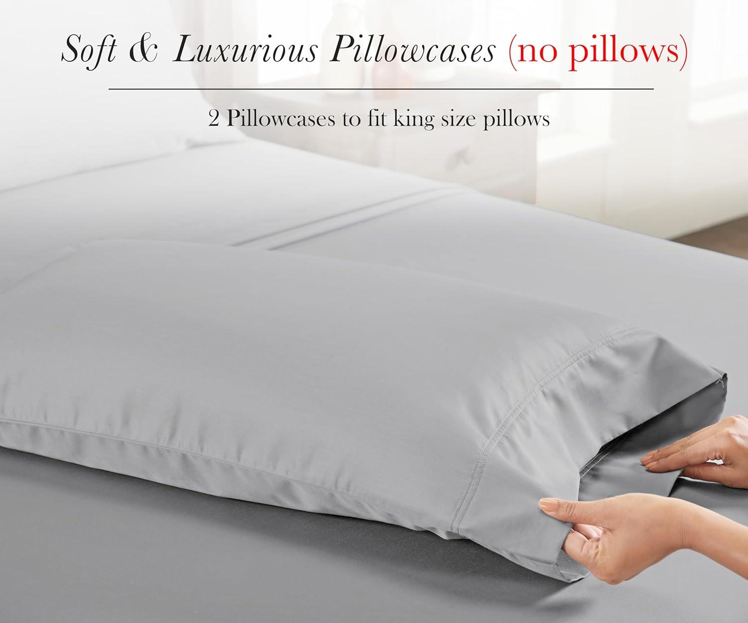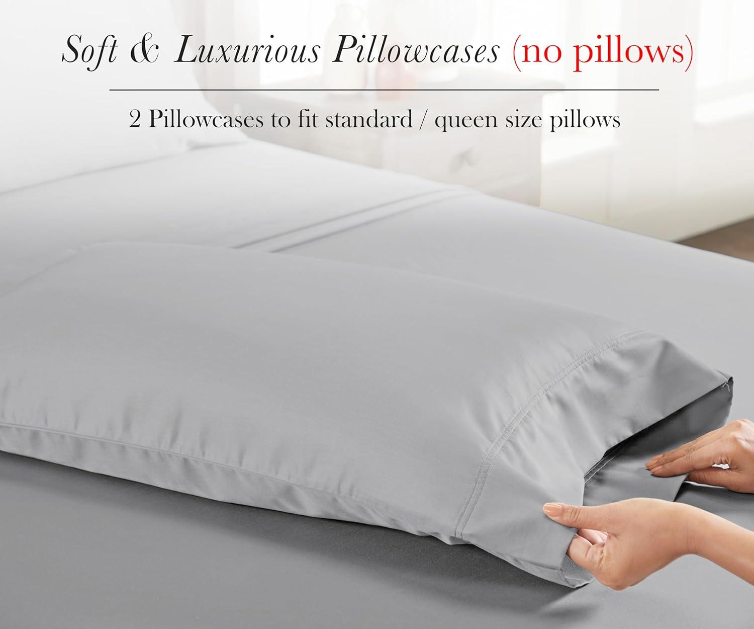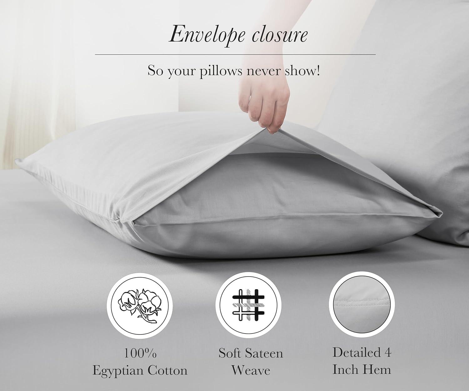 Luxury 100% Egyptian Cotton Pillow Cases Queen Size Set of 2, Sateen Weave, Soft, Breathable & Cooling Bright White Pillow Cases Set of 2 for Standard/Queen Size Pillows(Light Grey)